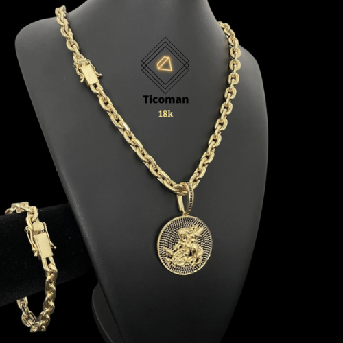 Conjunto Cadeado 10mm com Pingente São Jorge